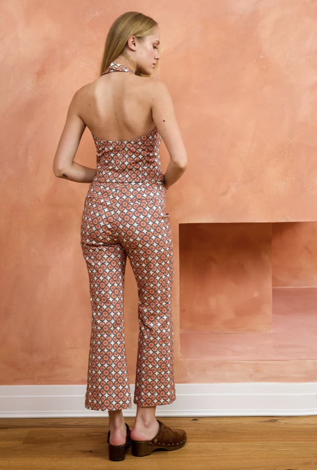 Crafted from sustainably sourced cotton, the Lava Pant boasts a low waistline, playful kick flare legs, and unique piping at the front. To add a touch of whimsy, we’ve adorned it with our signature Lotus of Life Flower print in cream. For a perfectly coordinated outfit, pair it with our Sunstone Top and Jasper Jacket, also in the same lively print.