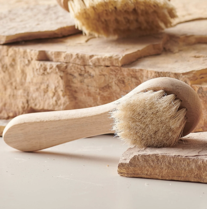 %100 doğal at kılından ve ham ağaçtan yapılmış yüz fırçası, nazik ve canlandırıcı bir kuru fırçalama ritüeli sunar. Ergonomik yapısı kolay kullanım imkanı sunmaktadır.