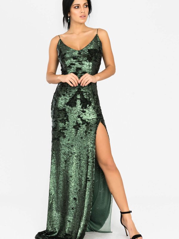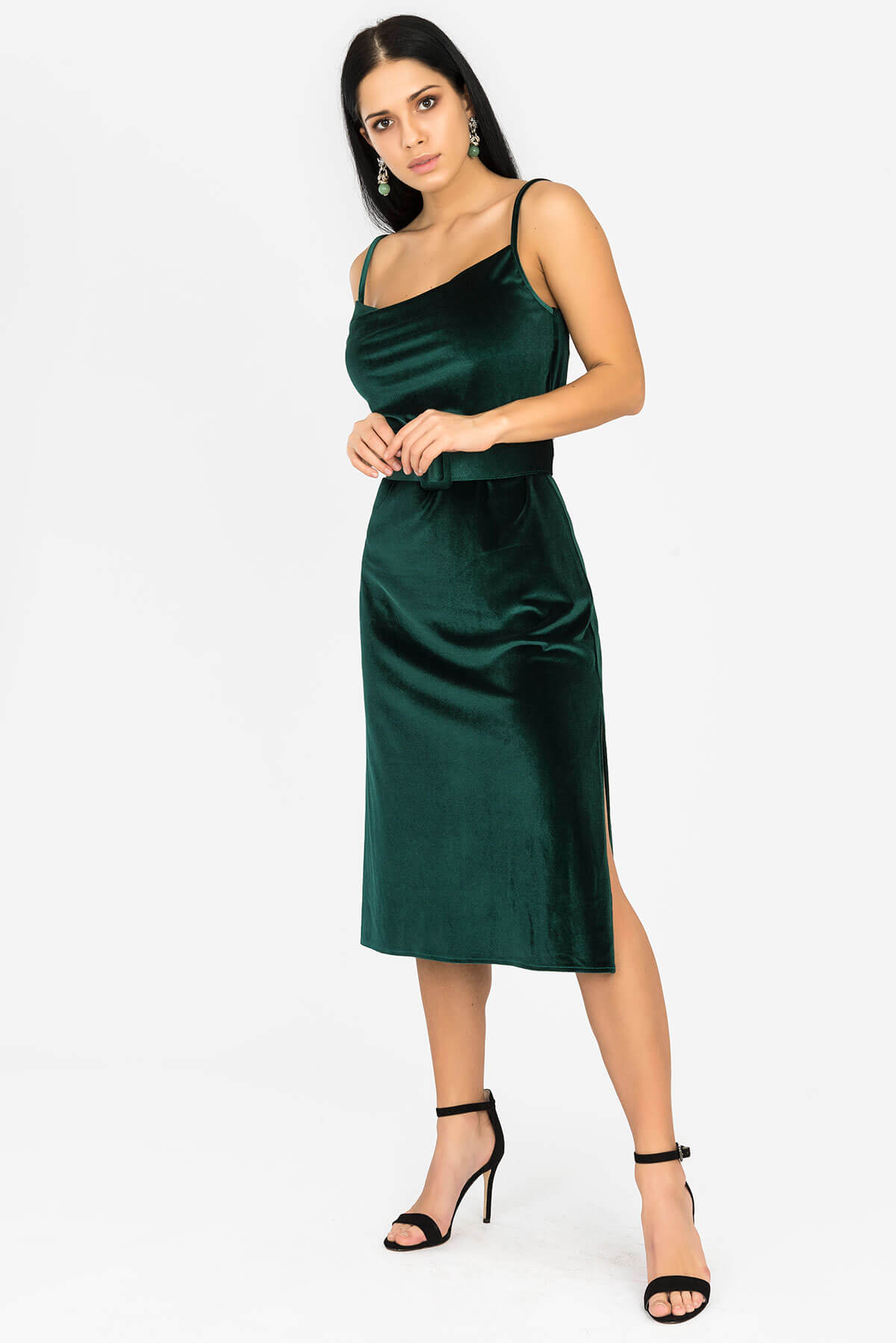 Midi Yeşil Kadife Elbise