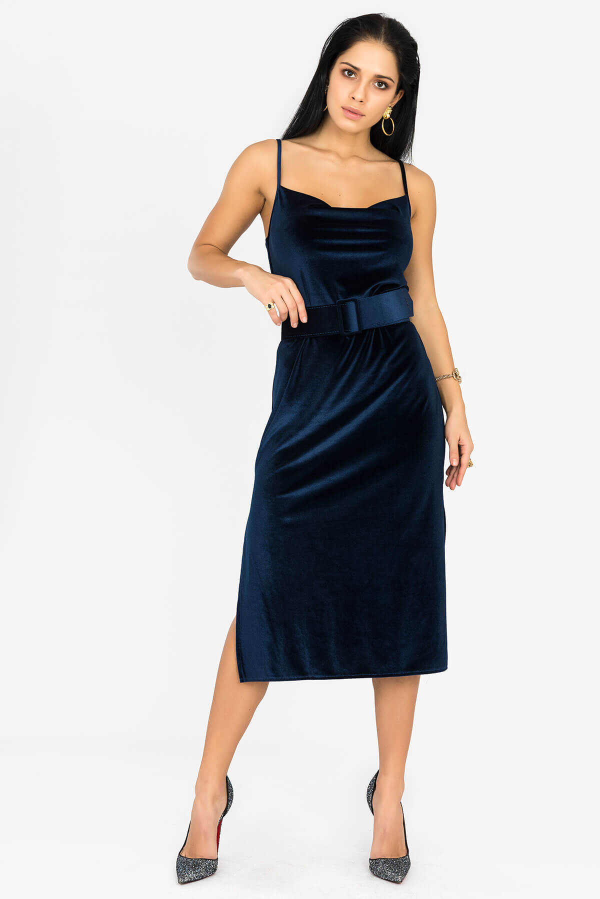 Midi Lacivert Kadife Elbise Orijinal fiyat: ₺5.900,00.Şu andaki fiyat: ₺1.770,00.