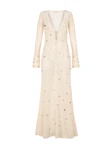 %100 cotton-mesh, long sleeve Dress with deep V- Neck and sea shell accessories.