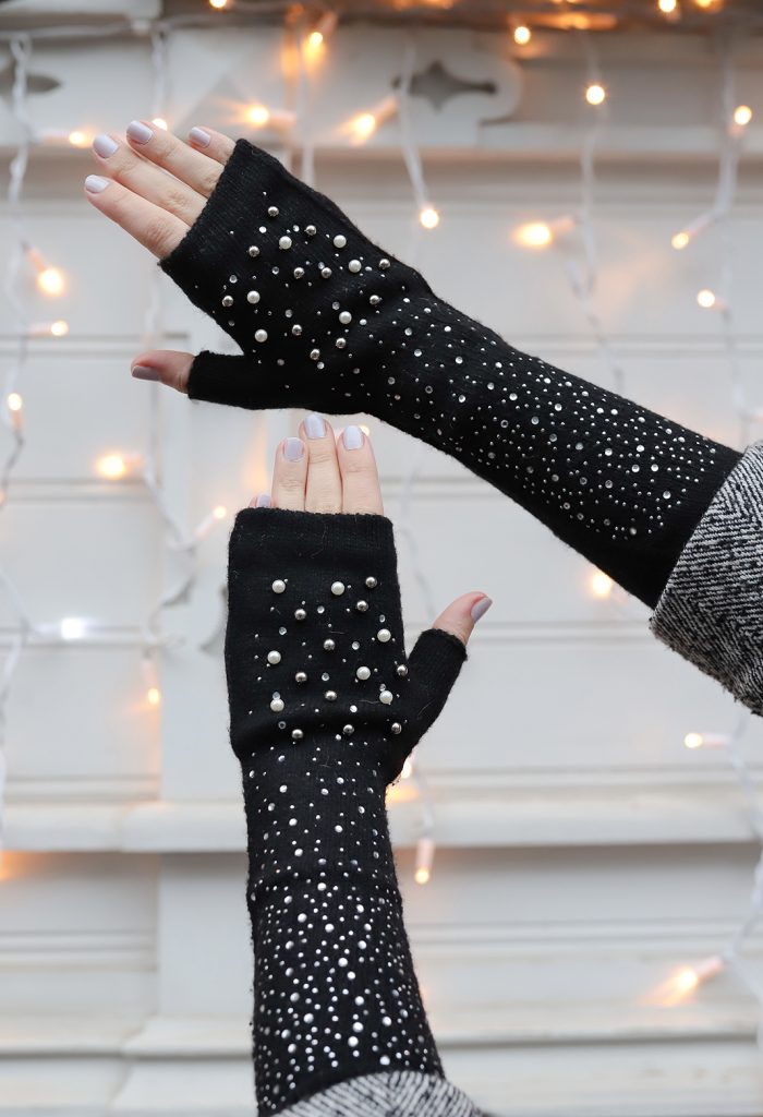 Pondichery İnci ve Kristal Taşlı Eldiven