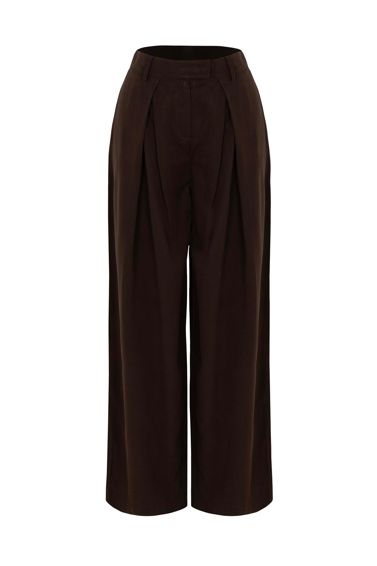 Wide-band, regular-waist trousers with a relaxed fit and wide-leg silhouette for comfortable wear.